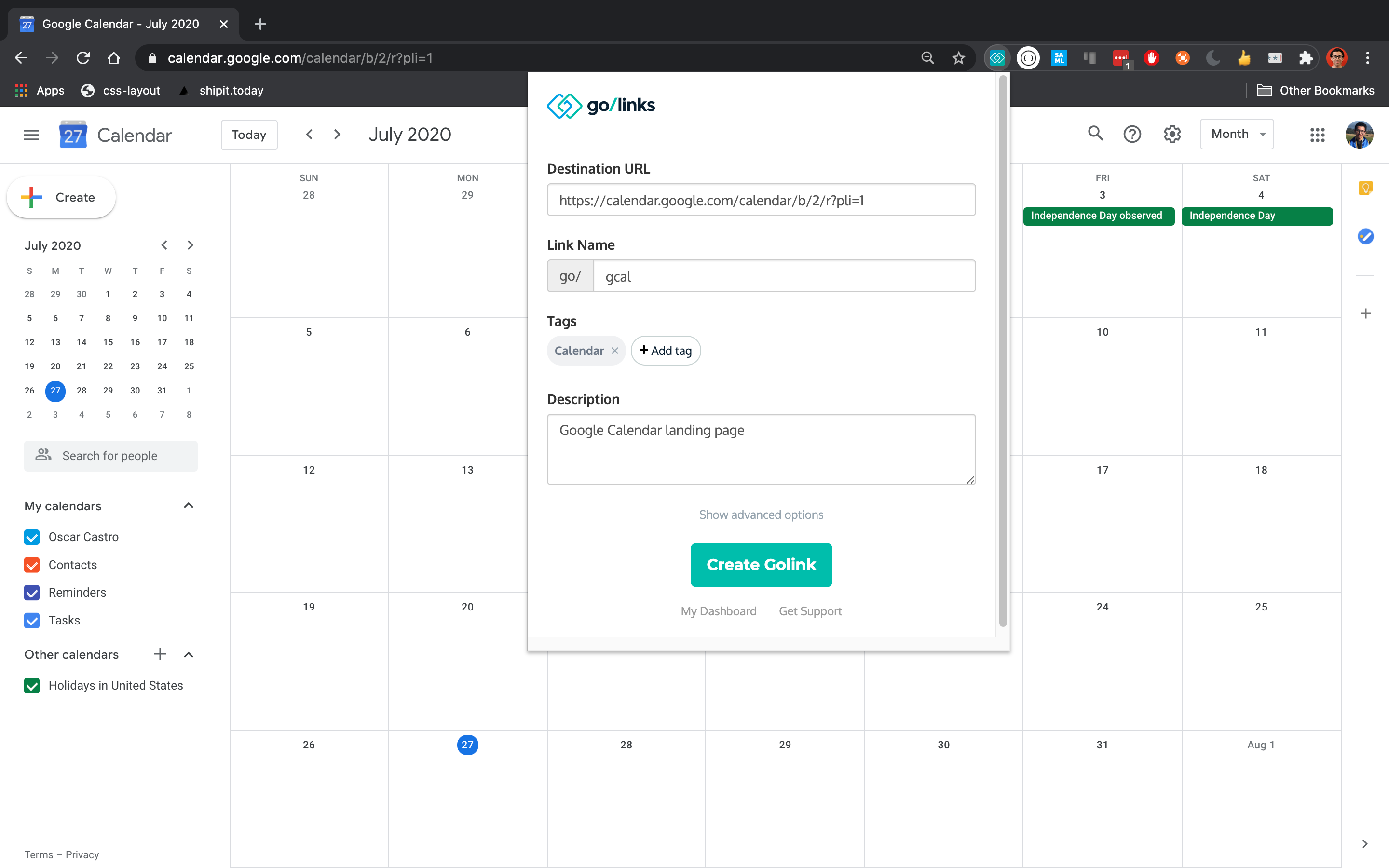• Easy to share team calendars - You can make your team calendar shareable within your organization, and then set up a golink for it. For example, the engineering team’s calendar could be go/eng-cal.