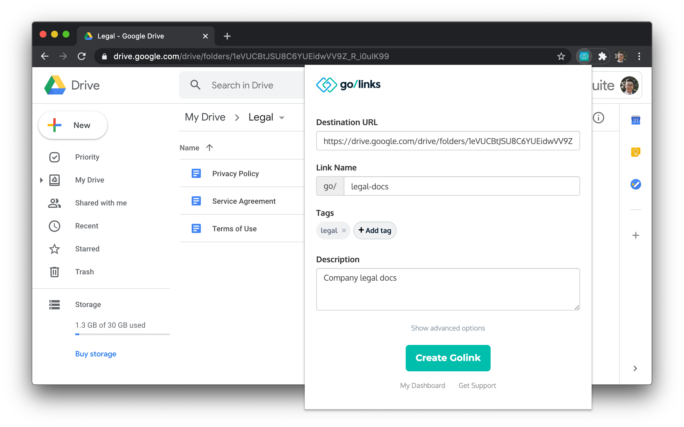 • Great for important folders - While you might not create a golink for every file in Google Drive, it’s really smart for folders that people work in regularly. Golinks can be created by anyone in the company, so people can create golinks for the folders that matter most to them.