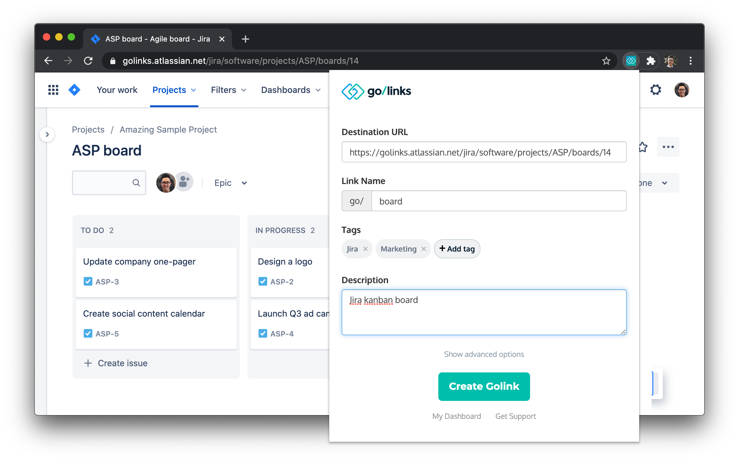 Golinks are short, easy-to-remember links that redirect to long, unsightly links. They work great for Jira for several reasons: