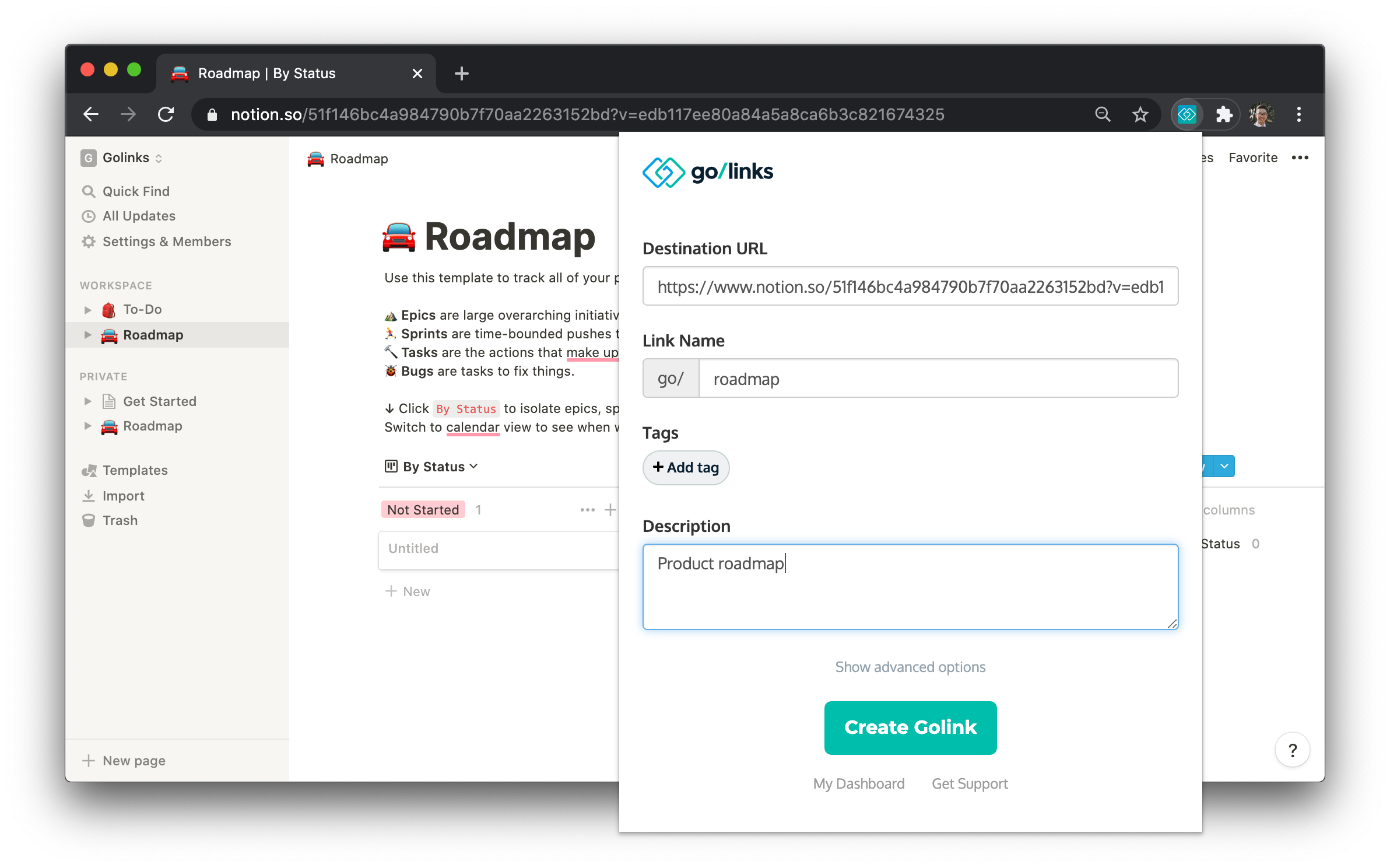 Golinks are short, easy-to-remember links that redirect to long, unsightly links. They work great for Notion for several reasons: